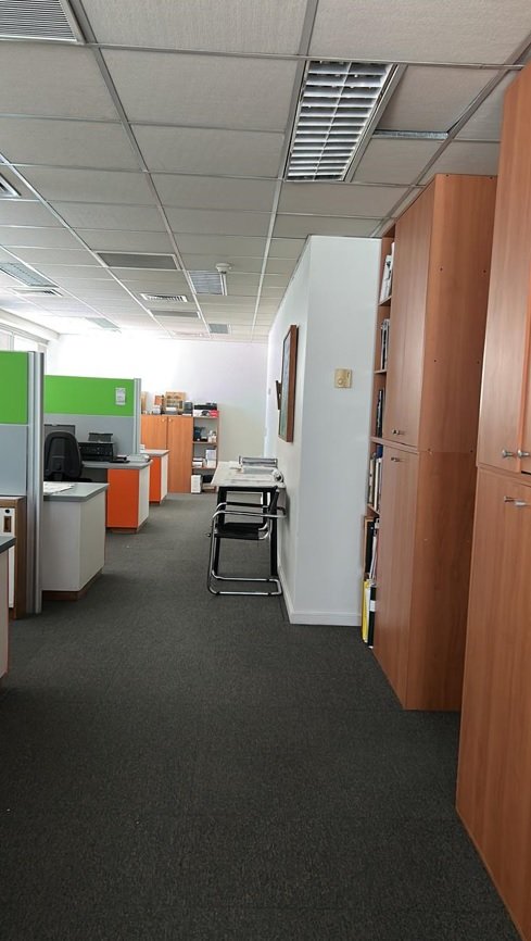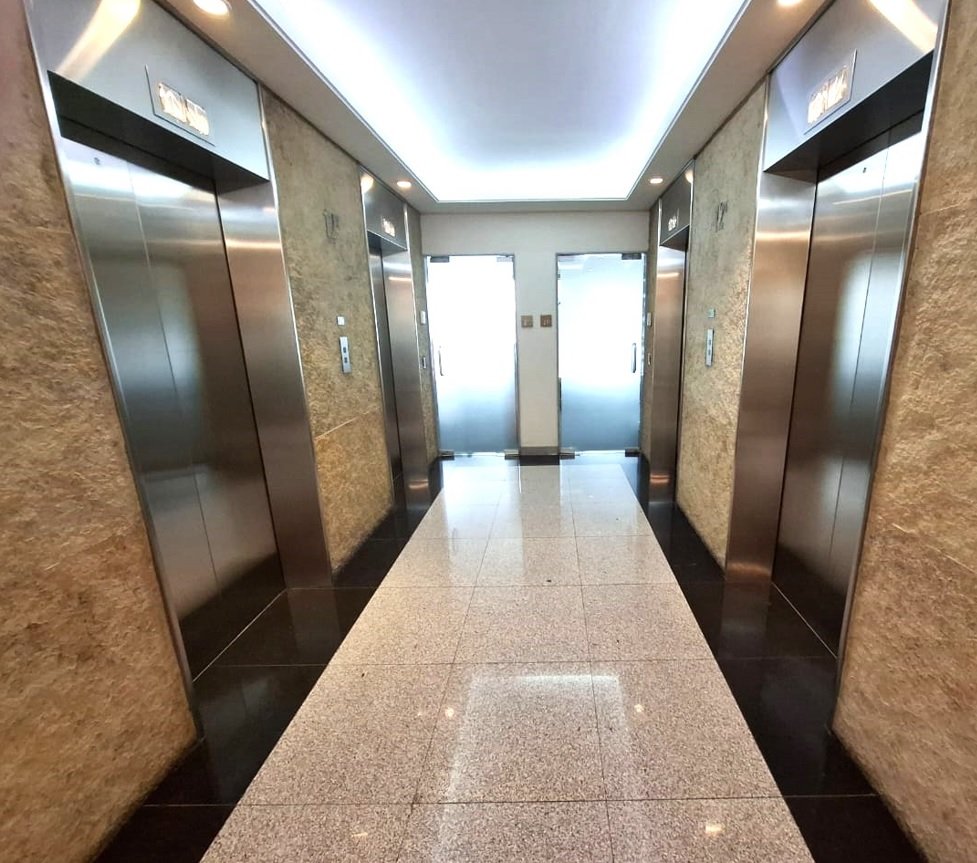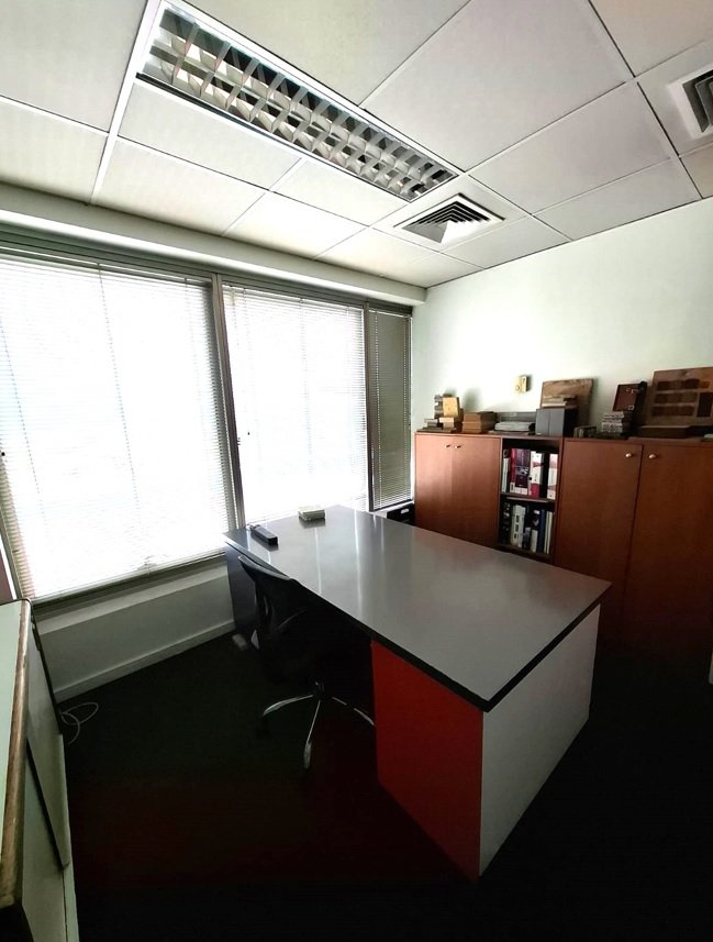 Edificio y oficina moderna y con estacionamientos privados y públicos.