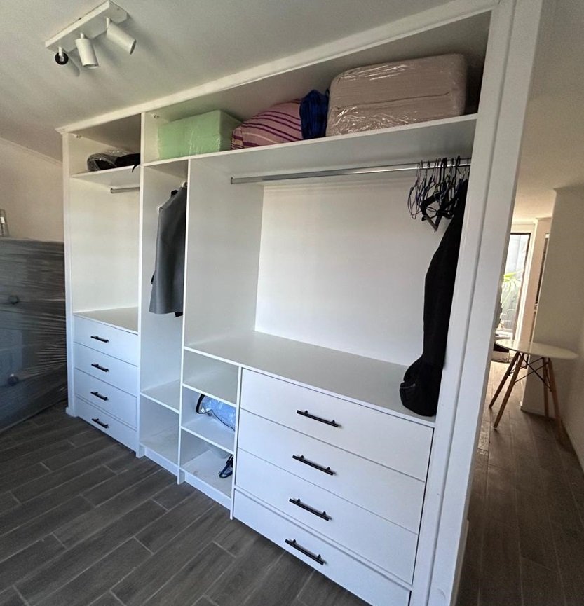 Cómoda cocina con muebles de melamina y que tiene espacio para la lavadora